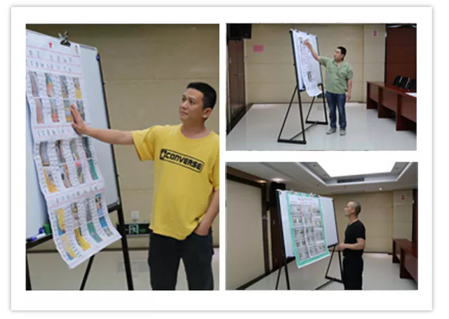 總結(jié)會上,輔導老師挑選了優(yōu)秀的海報,讓制作人給大家進行了經(jīng)驗分享,同時指出了現(xiàn)階段我司精益生產(chǎn)取得的成績以及存在的不足。