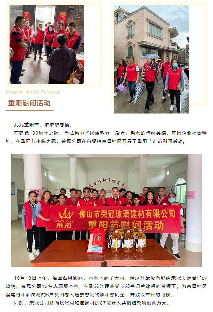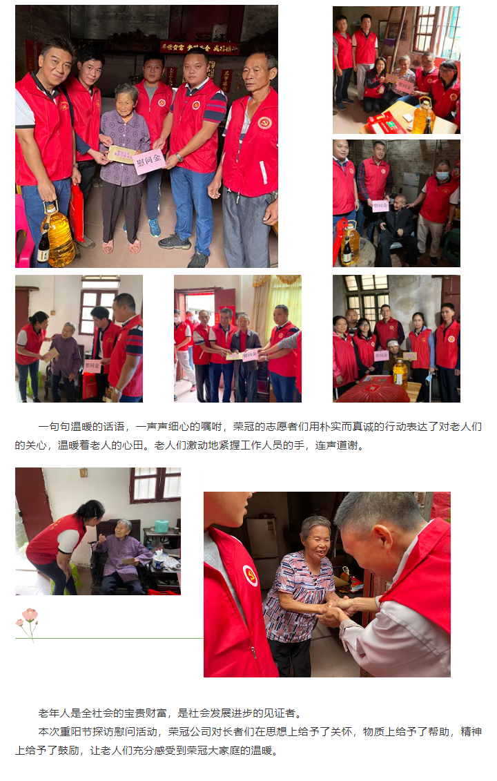 敬老愛老暖人心,榮冠公司開展重陽節(jié)慰問活動
