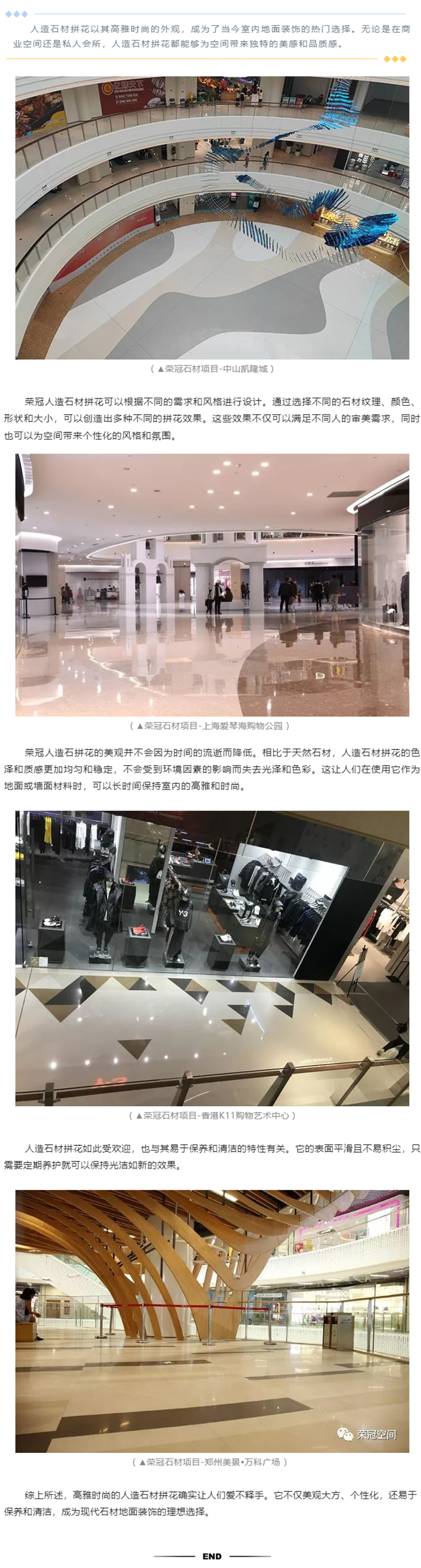 人造石材拼花以其高雅時(shí)尚的外觀,成為了當(dāng)今室內(nèi)地面裝飾的熱門(mén)選擇。無(wú)論是在商業(yè)空間還是私人會(huì)所,人造石材拼花都能夠?yàn)榭臻g帶來(lái)獨(dú)特的美感和品質(zhì)感。