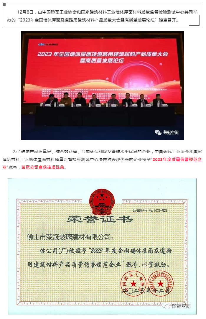 12月8日,由中國(guó)磚瓦工業(yè)協(xié)會(huì)和國(guó)家建筑材料工業(yè)墻體屋面材料質(zhì)量監(jiān)督檢驗(yàn)測(cè)試中心共同舉辦的“2023年全國(guó)墻體屋面及道路用建筑材料產(chǎn)品質(zhì)量大會(huì)暨高質(zhì)量發(fā)展論壇”隆重召開(kāi)。