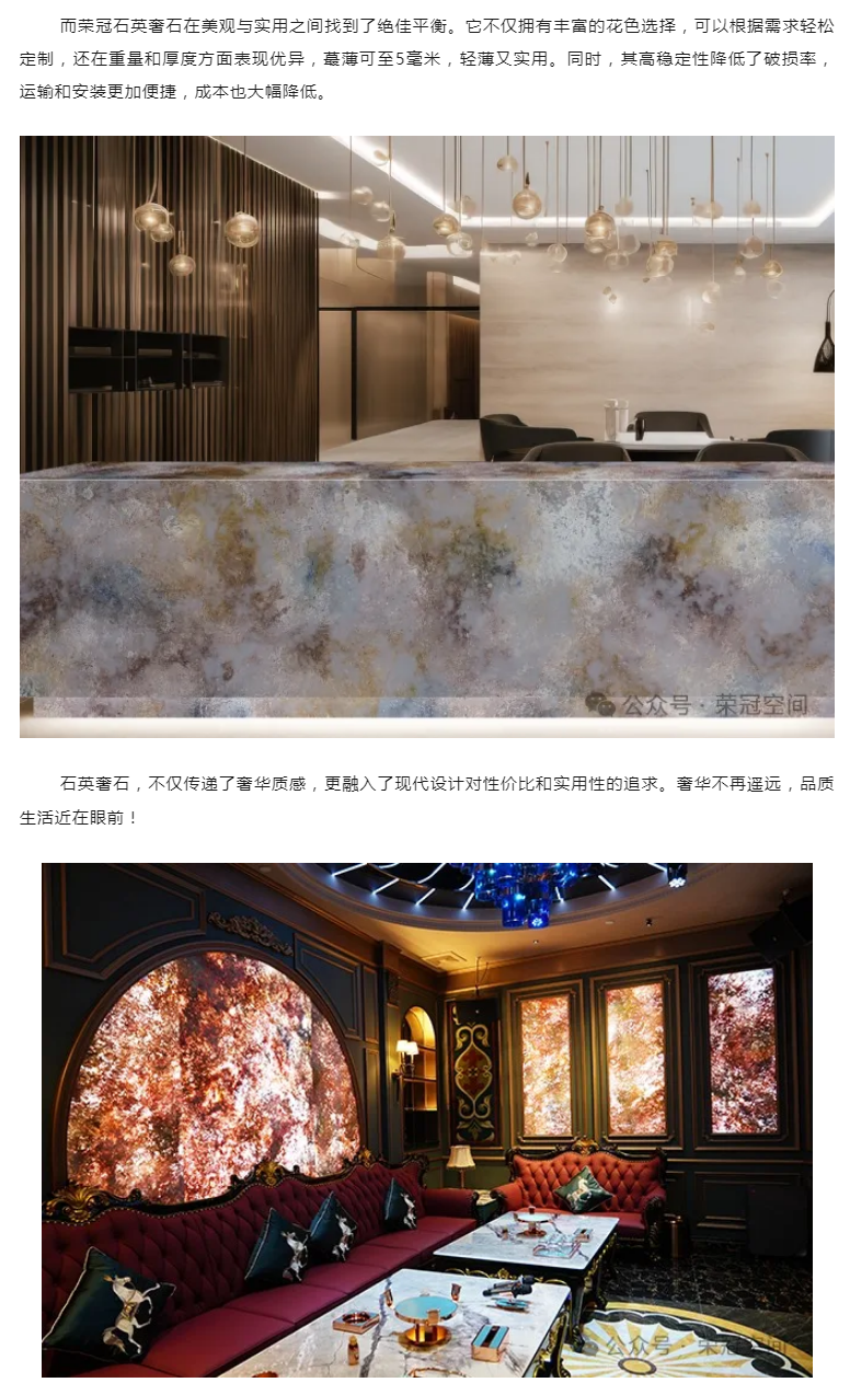 在家裝或商業(yè)空間設計中,奢石材料常常象征著品質(zhì)與品位。雖然天然奢石因其獨特的紋理和質(zhì)感備受青睞,但它的高昂成本與易碎特性卻讓不少人望而卻步。如今,石英奢石的出現(xiàn),為追求奢華與性價比的人們帶來了更優(yōu)的選擇。