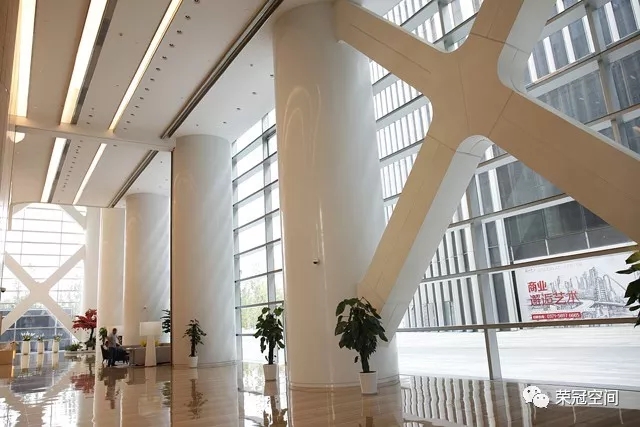 當(dāng)你進入到建筑內(nèi)部,你會發(fā)現(xiàn)"新銳"、"前衛(wèi)"、"時尚"是它內(nèi)部裝飾的代名詞。整個空間聳立著多條白潤如玉的人造石圓柱,溫潤的質(zhì)地,美觀而高雅,恰似朝日升起前的清爽、明凈,讓你的眼光不自覺的就被它所吸引過去。