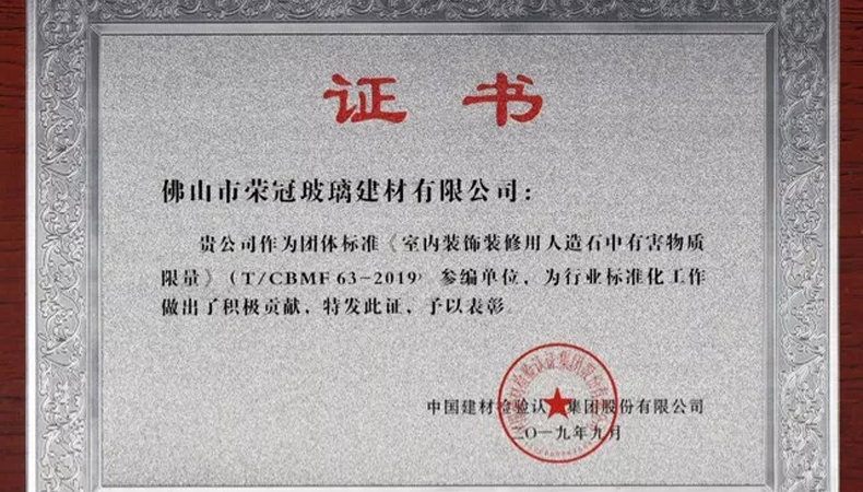 由佛山市榮冠玻璃建材有限公司參編的《室內裝飾裝修用人造石中有...