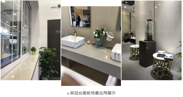 本次榮冠石材展位(C5023)以白色調(diào)為主,香檳金色為輔,通過簡約的空間演繹時(shí)尚典雅的視覺效果,凸顯出榮冠石材 “人造石工程專業(yè)服務(wù)商”以及“專業(yè)定制出口臺(tái)面板”的定位。