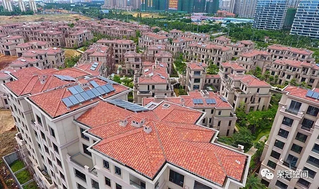 在整個香格里拉國賓館別墅區(qū),黃色的立墻搭配鮮明醒目的榮冠西瓦混鋪屋面,與周邊自然景致實現(xiàn)完美融合。在色彩上,整個別墅項目采用榮冠西瓦四色混鋪(無光復色40%、啡紅25%、紅胎30%、杏紅5%)作為屋面裝飾材料,整體用量超過40000㎡。