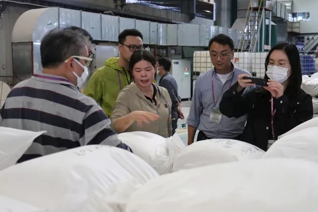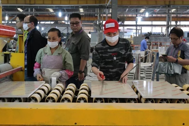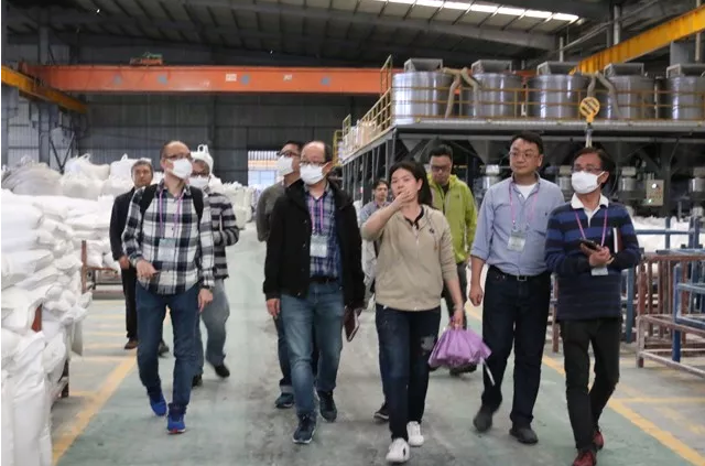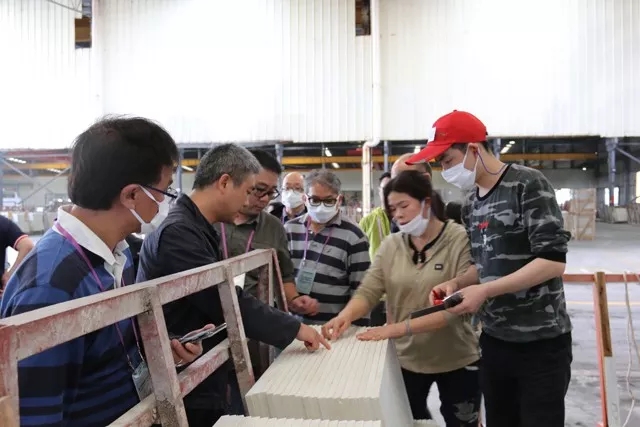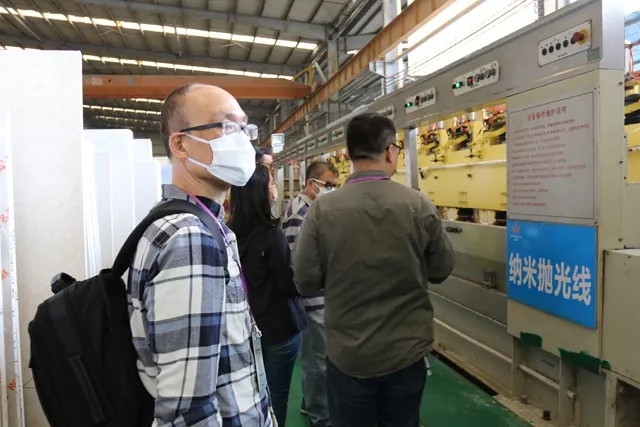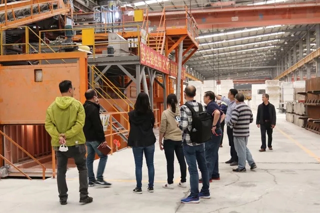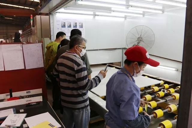 當(dāng)天,考察團(tuán)一行對(duì)榮冠人造石生產(chǎn)車間和展廳進(jìn)行了詳細(xì)的參觀考察。我司生產(chǎn)負(fù)責(zé)人逐一對(duì)人造石廠區(qū)的原料、生產(chǎn)設(shè)備、檢驗(yàn)設(shè)備、工藝流程等進(jìn)行了全面的講解展示。
