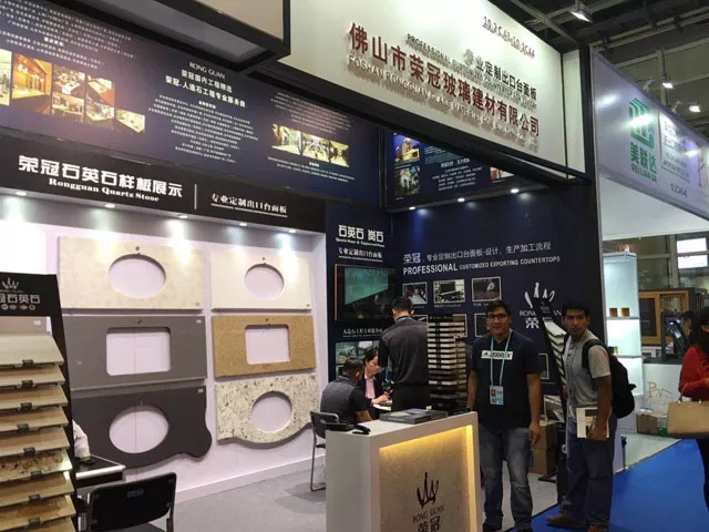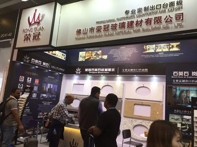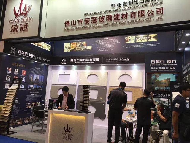 作為人造石工程專業(yè)服務(wù)商,榮冠石材擁有十多年積累的豐富生產(chǎn)加工經(jīng)驗(yàn),并使用國(guó)外引進(jìn)的先進(jìn)生產(chǎn)設(shè)備,確保產(chǎn)品性能穩(wěn)定,工藝品質(zhì)卓越。在本屆廣交會(huì)中,榮冠石材展示出臺(tái)面板的設(shè)計(jì)加工各個(gè)流程,并通過(guò)臺(tái)面板異型切割開孔組合等精細(xì)工藝展示,體現(xiàn)出榮冠在精加工方面的雄厚實(shí)力,獲得了觀展客商的一致好評(píng)。