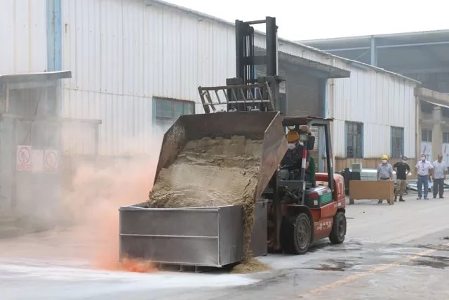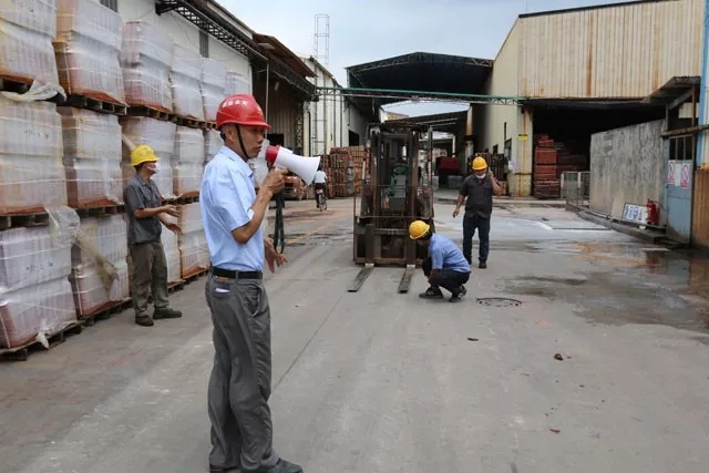 本次消防演練按照預(yù)定的方案,有序、緊張地進行。主要是應(yīng)對柴油泄露、柴油火災(zāi)或爆炸、叉車意外傷人等突發(fā)情況進行模擬教學演練。