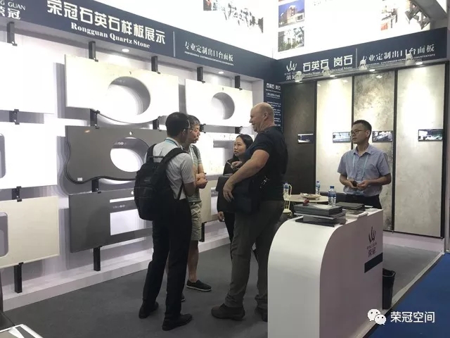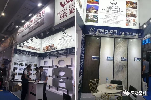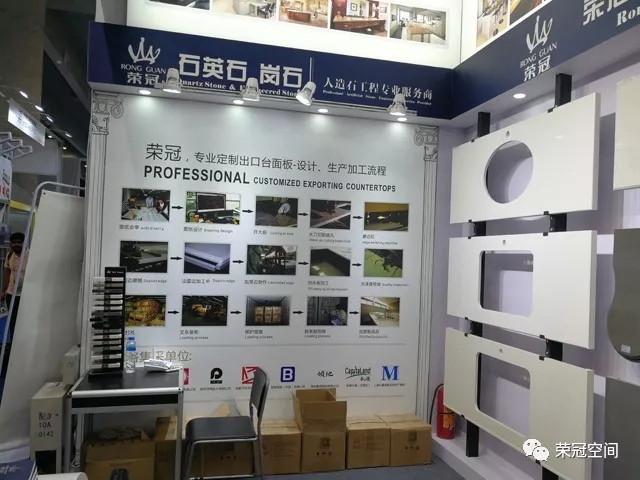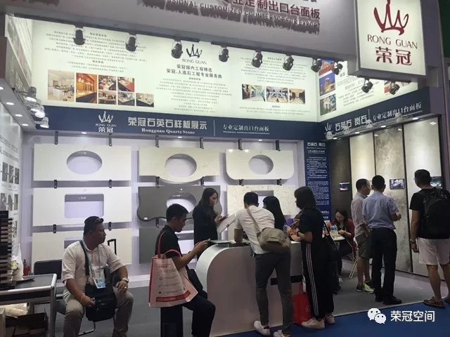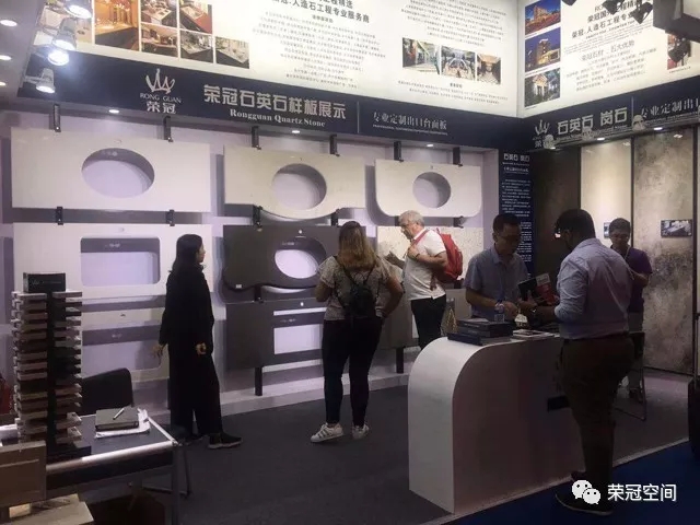 榮冠石材展位以白色作為主背景,搭配藍(lán)黑色邊框,在整個(gè)展區(qū)尤為顯眼。榮冠石材專業(yè)定制出口臺(tái)面板,以匠心為客戶提供優(yōu)質(zhì)的產(chǎn)品和服務(wù)。本次展位除了展示我司最新石材精品和臺(tái)面板加工工藝外,還重點(diǎn)突出了我司人造石應(yīng)用在國內(nèi)大型商業(yè)工程中的諸多案例,展現(xiàn)出榮冠石材的品牌優(yōu)勢與技術(shù)實(shí)力。