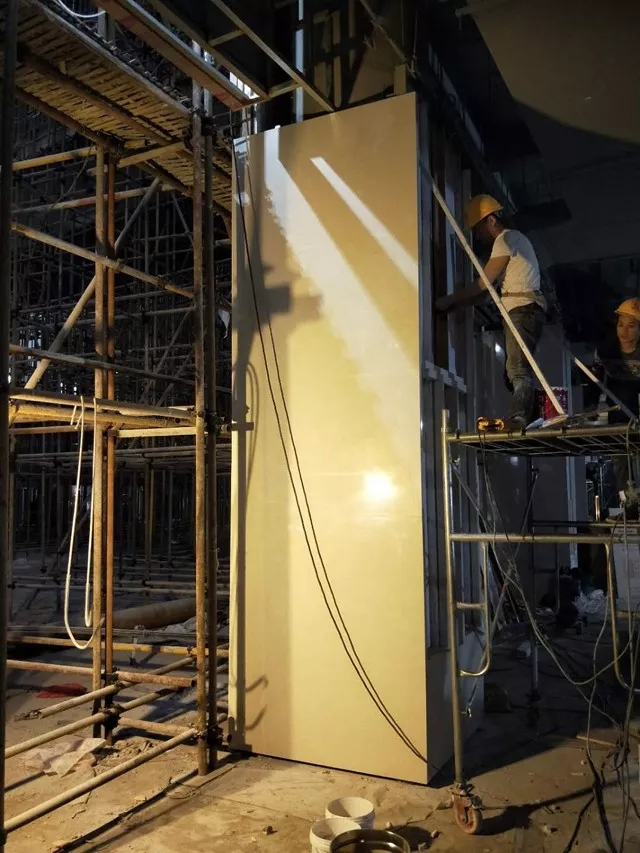 5.初步清潔附在板材表面的的污物,粘貼好的石材至少要三天后(可根據(jù)人造石專用粘貼劑的使用說(shuō)明)方可進(jìn)行清縫、填縫處理,讓墻體內(nèi)里的水分充分排出,填縫時(shí)應(yīng)使用人造石材專用的填縫劑。