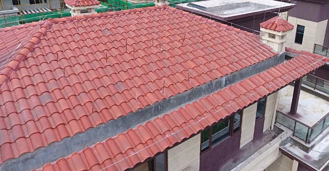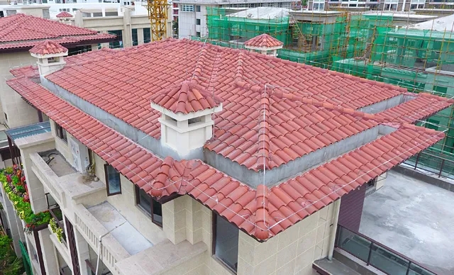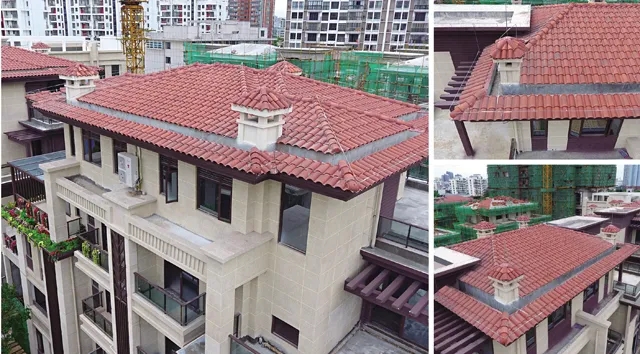 長(zhǎng)弘·御墅使用了榮冠羅曼瓦(A006單彩、W082赤紅 各50%)作為屋面裝飾,用量約3000平方米。