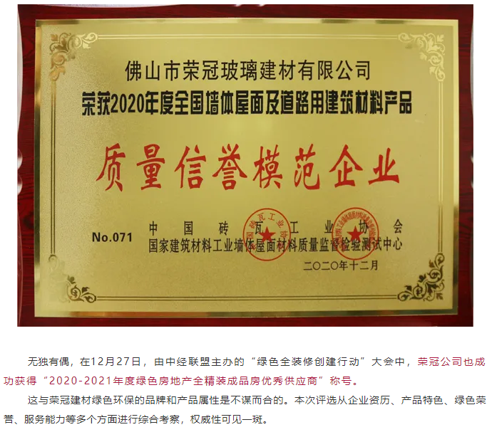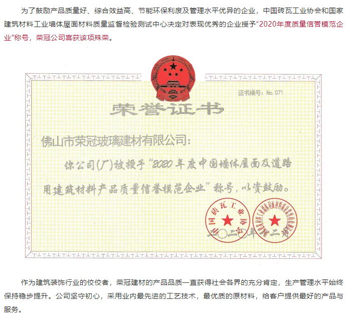 2021年,榮冠公司將再接再厲,為推動行業(yè)創(chuàng)新智造、質(zhì)量提升、節(jié)能減排、綠色發(fā)展做出新的貢獻。