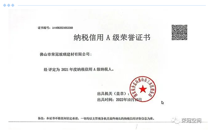 榮冠公司一直以來嚴格遵守國家法律法規(guī),依法納稅,不斷加強對稅法及政策的深入學習,不斷完善企業(yè)稅務工作的管理體系。我公司能夠獲得納稅信用A級,是稅務機關對我公司依法納稅、誠信經營、積極履行社會責任的高度肯定,也是對我公司稅務管理工作的高度認可。