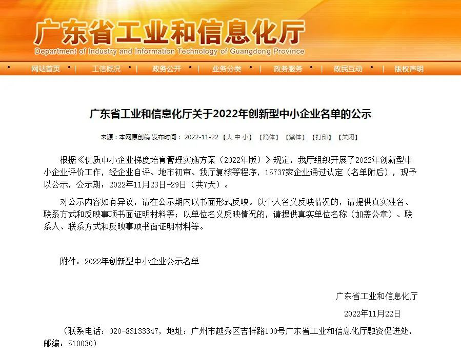 榮冠公司榮獲廣東省“2022年創(chuàng)新型中小企業(yè)”認(rèn)定!