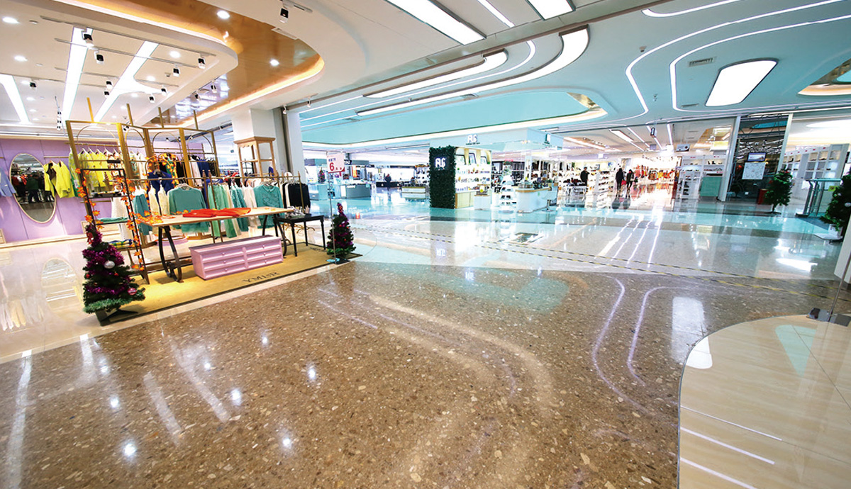 運(yùn)用大花系列的崗石,晶瑩通透配上柔麗悅目多元化之色彩,將單調(diào)枯燥的人行通道巧妙地幻化為立體之視覺藝術(shù),三色列崗石拼接在一起,如行云流水,優(yōu)美典雅、光潔清麗,使整個(gè)購物點(diǎn)的地面具有透明透光的質(zhì)感。
