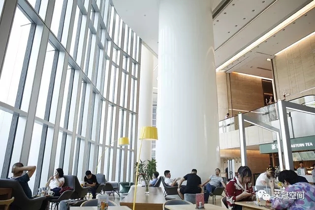 當(dāng)你進(jìn)入到建筑內(nèi)部,你會(huì)發(fā)現(xiàn)"新銳"、"前衛(wèi)"、"時(shí)尚"是它內(nèi)部裝飾的代名詞。整個(gè)空間聳立著多條白潤(rùn)如玉的人造石圓柱,溫潤(rùn)的質(zhì)地,美觀而高雅,恰似朝日升起前的清爽、明凈,讓你的眼光不自覺(jué)的就被它所吸引過(guò)去。