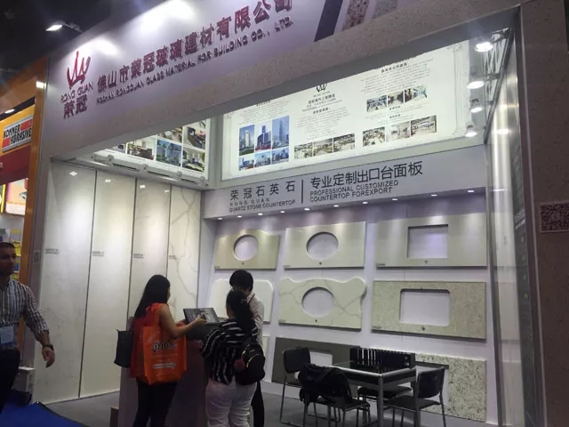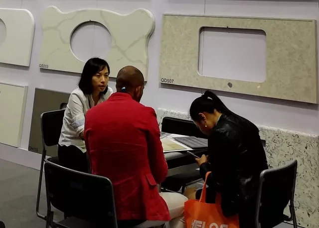 在展會(huì)現(xiàn)場(chǎng),榮冠出口部工作人員向蒞臨展位的客戶講解了榮冠石英石臺(tái)面產(chǎn)品的品質(zhì)優(yōu)勢(shì),與來(lái)自全球各地的嘉賓深入洽談合作。通過(guò)參觀展品和工作人員的介紹,現(xiàn)場(chǎng)有多位客戶表示出進(jìn)一步合作的意向。