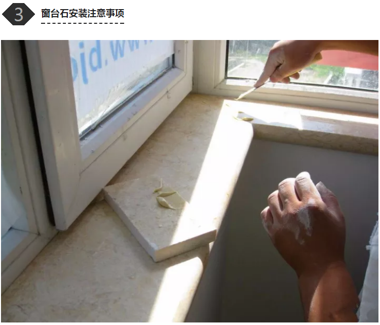 窗體做好防水后,在貼窗臺(tái)石,給窗戶雙層保障。