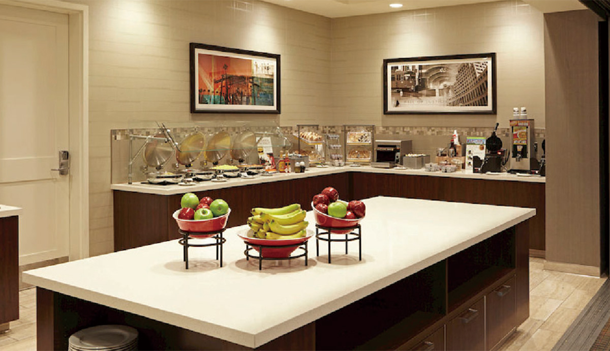 舒適度作為洛杉磯機(jī)場萬豪酒店的首要標(biāo)準(zhǔn),一切設(shè)施都以此為目標(biāo)。其中選用了榮冠石英石QS301用于臺面板。榮冠石英石表面如晶如點(diǎn)的花式細(xì)密清晰,玉石般晶瑩剔透,觸感溫潤細(xì)滑,造就了酒店的簇新面貌,不論是餐廳、洗衛(wèi)室都增添一份時(shí)尚雅致的氣息,讓旅客瞬間忘記旅途的疲倦。